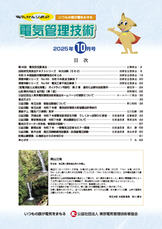 公益社団法人 東京電気管理技術者協会の「電気管理技術」は、電気保安管理に関する技術的な研究資料、経済産業局を中心とする行政施策、新エネルギー、技術研究発表会、電気安全講習会などの紹介記事、並びに当協会及び支部の活動を掲載しています。